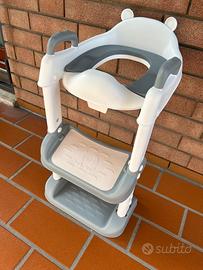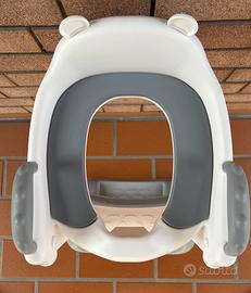Pratico riduttore per WC di plastica rigida con seduta in gomma. Colore bianco e grigio.