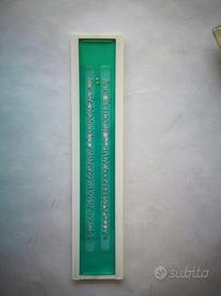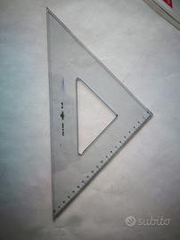 Set composto da, 1 triplodecimetro, 1 doppiodecimetro, 1 squadra 60°, 1 squadra 45°, 1 goniometro 360°, 1 normografo