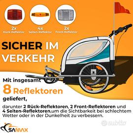 Carrello 2 in 1 per bicicletta. Dati tecnici: • dimensioni complessive: circa 145 x 76 x 98 cm (LxLxH); • ruota anteriore girevole a 360° e bloccabile; • facile da montare e convertire da jogger a rimorchio per 1-2 bambini senza attrezzi; • pneumatici anteriori da 10 pollici, posteriori da 20 pollici, pneumatici; • carico massimo: circa 20 kg; • non adatto a biciclette elettriche. Caratteristiche: • telaio tubolare in acciaio molto stabile con roll bar; • cintura per i fianchi e spallacci con imbottitura; • età consigliata: da 18 mesi; • comodo anche per trasporto di animali taglia media. Praticamente MAI usato, prezzo di acquisto € 190, fermo in garage da allora! NON SPEDISCO, PREZZO NON TRATTABILE! ;)
