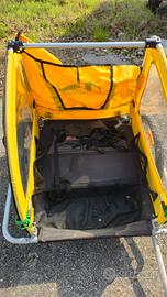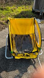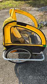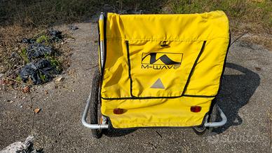 Vendo rimorchio per bicicletta M-Wave versatile. L'oggetto è in condizioni eccellenti, mai usato, come dimostra il manuale d'istruzioni ancora sigillato nella sua confezione originale. Il carrello è dotato di un robusto telaio, cinture di sicurezza a 5 punti per il trasporto dei bambini in totale protezione e ampie finestre laterali trasparenti perfettamente conservate. La struttura esterna di colore giallo è vivida e priva di segni di usura, completa di catarifrangenti sulle ruote e sulla parte posteriore per la massima visibilità su strada.