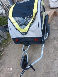 rimorchio/ passeggino per bicicletta con freni nuovo con scatola, può essere agganciato alla bicicletta oppure si monta la terza ruota anteriore e diventa passeggino biposto o trasporto animale domestico. posso consegnare a Orbassano TO Saluzzo CN oppure ritiro a Pinerolo