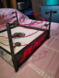 Vendo ring WWE SmackDown/RAW originale del 2005 per action figure, con logo WWE al centro del tappeto e bordi laterali decorati “SmackDown”.