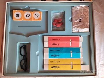 Gioco da tavolo Rischiatutto completo (tranne clessidra) con tutti gli accessori come da foto. Scatola leggermente scollata sul lato.