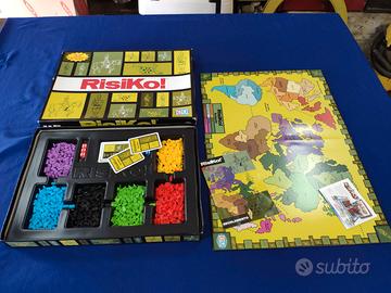 Vendo famosissimo Risiko! Un gioco di culto che raccoglie migliaia di appassionati in tutta Italia. Nella confezione classica sono presenti non solo le regole tradizionali, ma anche quelle "TORNEO" adottate nel corso dei Campionati Nazionali. La confezione contiene: 1 plancia, 6 eserciti di diverso colore costituiti da carrarmatini e bandierine, 1 mazzo di carte, 3 dadi rossi, 3 dadi blu, 1 manuale di istruzioni.