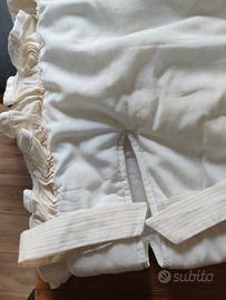 rivestimento imbottito per cesto porta bebè marca Nanan, sfondo bianco con pois color beige, misure 85 x 40 cm, funge da paracolpi per la cesta