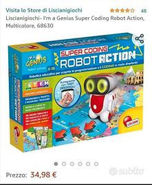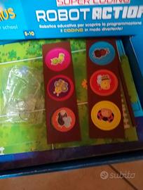 Robot ,parla e interattivo, lo puoi programmare con i tasti che ha sulla testa, all'interno della scatola ci sono 3 cartelloni grandi e tre modalità di gioco per conoscere gli animali del mondo e l'Italia, marca lisciani, età 5/10