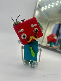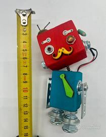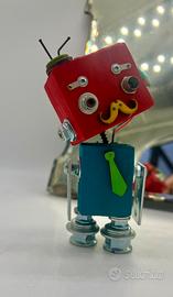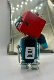 Luce di cortesia robot. Lampada di legno a batteria stile robot modello "RUST", fatto a mano