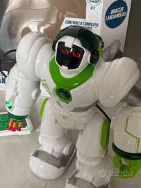 Mr Genio Robot Rc lanciamissili con suoni, luci e telecomando, con diverse modalità di gioco: cammina in tutte le direzioni, muove tutti gli arti, danza e lancia missili dal braccio, funzione di programmazione dei movimenti. Ricarica con cavo usb. Usato poche volte, in ottime condizioni, vendo a 15 euro. Solo ritiro a mano a Livorno.