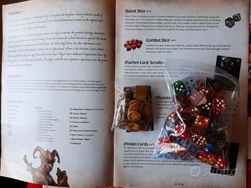 Espansione per il gioco da tavolo Roll Player. Questa espansione, che necessita del gioco base per essere giocata, aggiunge la possibilità per il proprio eroe di combattere mostri e creature. A ogni vittoria si ottiene dell'esperienza che permette di combattere mostri sempre più forti, fino ad arrivare al boss di fine partita. L'espansione aggiunge anche molti componenti per il gioco base. Consigliatissima per tutti gli appassionati di Roll Player. In Inglese e come nuova.