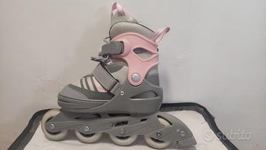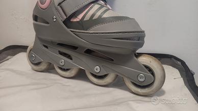 Roller per bambina in tonalità rosa e grigio, con taglia regolabile dal numero 33 al 37 per adattarsi alla crescita del piede. Completi di freno posteriore per una maggiore sicurezza. Dotati di fibbia a rilascio rapido per una chiusura sicura e veloce, sistema Thermo-Vent per un'eccellente circolazione dell'aria e sistema Easy-Slip con inserto, linguetta e cinghietto in elastan per una calzata semplice e confortevole.