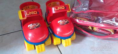 pattini pet bambini ,roller set, n. 22/29 pattini usati una sola volta completi di ginocchiere nuove Disney Pixar