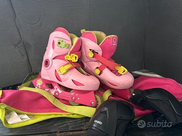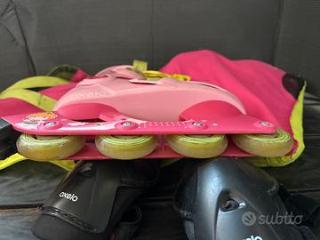 Rollerblade bambina marca oxelo, decathlon. Taglia 32/34 usati pochissimo. Completi di sacca e protezioni, ginocchia gomiti polsi.