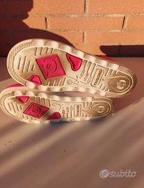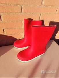 vendi 2 paia di stivali pioggia per bambino e bambina. quelli da bimbo sono rossi misure 28/29 mentre quello da bimba sono fucsia misura 32/33