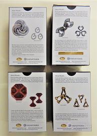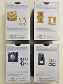 Rompicapo giapponesi "Hanayama" in metallo a vari livelli di difficoltà da 1 a 6. Molto divertenti per mettersi alla prova. Il gioco consiste nello smontare e rimontare il rompicapo.