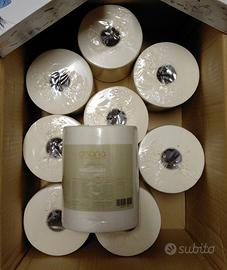 Vendo 9 rotoli DISANA carte per pannolini, tessuto biodegradabile 100 pezzi a rotolo (900 pezzi). I rotoli sono ancora imballati.