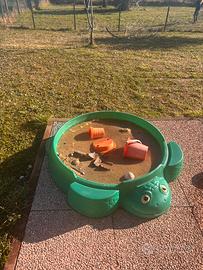 Vendo sabbiera in buono stato. Basamento intatto, copertura con una rottura come da immagine che non ne compromette il funzionamento. Molto capiente 70 kg di sabbia non inclusa