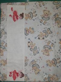 sacchetto e asciugamano con ballerina ricamato punto croce per richiamare il motivo del sacchetto .