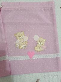 Sacchetto borsa per primo cambio Sartoriale Prezzo per uno Possibilità di personalizzarlo con il nome della bambina Per ulteriori informazioni sono a disposizione