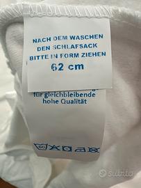 Due sacchi nanna leggeri che si possono utilizzare dal 1 al 6 mese circa (taglie 56 e 62). Possono essere usati da soli nei mesi piu caldi, o sotto ad altri sacchi nanna senza maniche nei mesi più freddi.