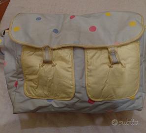 Set sacco a pelo + borsone colore azzurro a pois colorati marca Prenatal.