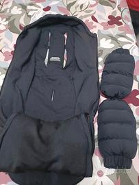 sacco invernale per passeggino con muffole , chiusura magnetica, zip apertura totale e parziale .