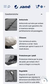 Sacco universale con interno in morbido pile e protezione per i piedi che garantisce una buona conservazione. Il tessuto antiscivolo alla base permette che il sacco resti fissato in modo corretto al passeggino.