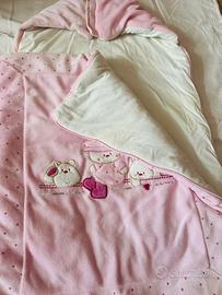 Vendo un adorabile sacco nanna o sacco da culla, usato ma in condizioni pari al nuovo. È di un delicato colore rosa con decorazioni a tema orsetti ricamate. Realizzato in ciniglia morbida e calda, è perfetto per tenere il bambino al caldo durante le passeggiate in passeggino o ovetto, specialmente nei mesi più freddi. Lavabile in lavatrice.