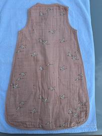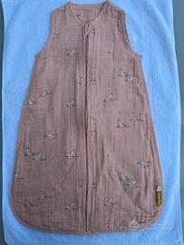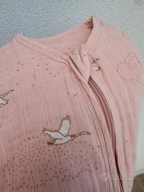 Bellissimo sacco nanna di Moulin Roty rosa, taglia 0/6 mesi, max 70 cm. Tessuto di cotone biologico morbidissimo con una tenera fantasia, certificato GOTS ed OEKO-TEX. TOG 1 estivo.