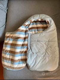 Vendo sacco invernale per carrozzina o ovetto marca Minibanda. Molto caldo, munito di aperture per far passare le cinture, interno morbidissimo. Utilizzabile anche come sacco per il passeggino per i primi mesi ( consiglio fino a circa 62-65 cm di altezza, vedasi misure in foto ). lunghezza totale 70 cm. Usato pochissimo, pari al nuovo.