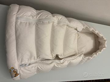 Vendo sacco Piumino Danesi (acquistato nuovo presso negozio monomarca), caldissimo e praticissimo. Lo si puo usare in molti modi ad esempio nella culla, nella navetta o per spostare i bambini in inverno da ambienti freddi (ad esempio dall’auto alla casa o viceversa). È dotato di una cerniera che, passate le prime settimane, permette di stendere il sacco per contenere le gambe.