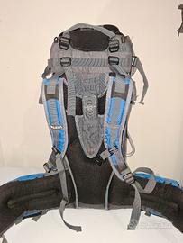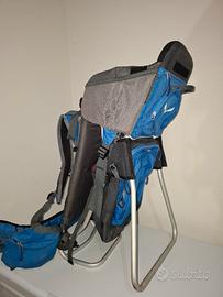 Vendo Salewa Zaino per bambini Koala II color blu con tendina parasole e copertura antipioggia. Lo zaino ha un sistema di appoggio a terra per mantenere lo zaino in equilibrio.