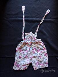 Vendo una salopette leggera a fiori, dimensioni lunghezza da elastico in giù 29 cm, vita elasticizzata 21 cm, bretelle 37 (18,5 fronte/retro). Ottime condizioni