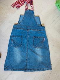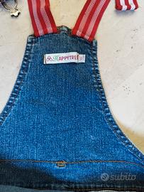 Gonna jeans con cinta marrone da bambina Ha lo spacco dietro e delle mani in simil pelle sulle tasche davanti (la mano sulla tasca sinistra e un po' rovinata) Taglia unica ma dovrebbe essere arrivare a 10 anni Vita: da 31 cm a 35 cm Fianchi: 39 cm Lunghezza: 53 cm Lunghezza cinta: 76 cm