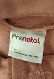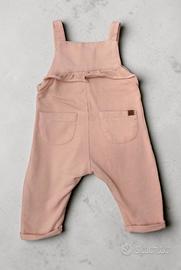 Salopette per neonata in morbido tessuto felpato color rosa cipria. Presenta una graziosa stampa a forma di cuore sul lato. - Marca Prenatal - Mesi 9 - 12, 76 cm - Chiusura con bottoncini sul davanti. - Orlo arrotolato.