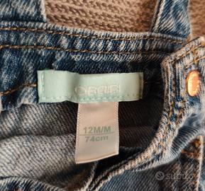 Salopette di Jeans neonato, marca Obaibi. Ottime condizioni. Taglia 12 mesi, 71 cm, ma veste un po' più piccolino.