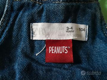 Salopette gonna jeans denim bambina taglia 3/4 anni cm 104. Zara Peanuts con Snoopy. No buchi o imperfezioni. Usato poco, in ottime condizioni. No animali, No fumatori