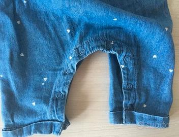 Salopette Idexè, 6 mesi, colore jeans in cotone, con cuoricini bianchi, bretelline con bottoncini, e bottoncini a clip. Molto comoda da indossare, ottima vestibilità, nuova senza cartellino.