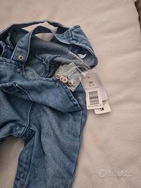 Salopette Idexe' in jeans neonato 62 cm 3 - 6 mesi, nuovo con cartellino, mai utilizzata, con bretelle regolabili. Materiale 75% cotone. Ottima per primavera/estate.