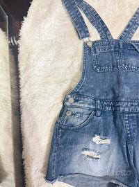 Salopette in jeans da bambina , taglia XS , Realizzata in denim , fantastiche cuciture e vestibilita, vendo a poco perchè siamo fuori stagione, ma può perfettamente essere indossata, con sotto dei collant o leggins;