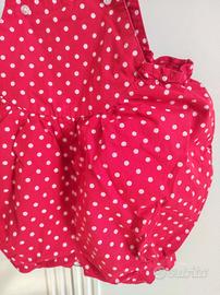 Simpatica salopette in cotone rossa a pois bianchi.