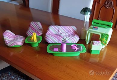 mitico salotto completo anni 80 composto da una toeletta con sgabello,2 tavoli ,2 poltrone piccole e 1 salotto grande più lampada e vari accessori come da foto.Una delle poltroncine risulta un pochino macchiata ,la lampada da verificare il funzionamento.il toppe dei tavoli un po consumati vedere foto.
