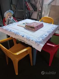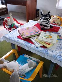 Salotto Bimbi Tavolino, 4 sedie, peluche libri