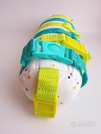 Tieniti impegnato con le fibbie anti-pizzico mentre sviluppi la forza delle mani e alleni la coordinazione bilaterale su questo cuscino di cotone.