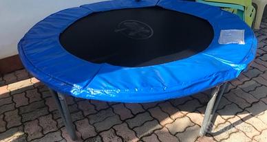 Salta salta per bambini usato in discrete condizioni. Da ripristinare una parte della protezione laterale (spesa della riparazione irrisoria). Struttura, molle e tappeto elastico ottimi. Valuto offerte sensate.