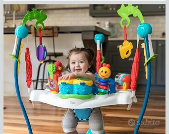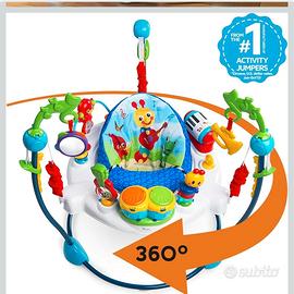 Sedile girevole a 360° per consentire al bambino di accedere a tutti i giocattoli delle stazioni di veglia, ha anche imbottiture aggiuntive e uno schienale più alto per un maggiore comfort e mantenimento