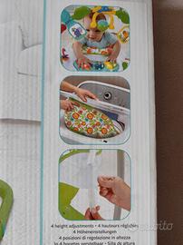 ottimo babysitter, il bambino rimane dentro al cestello , gioca con gli applicativi, con suoni, luci, specchi e salta, molleggiando sulle molle regolabili.
