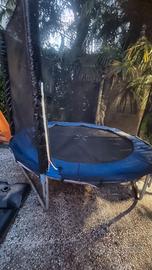 Vendo tappeto elastico- salterino con struttura in metallo, rete di contenimento, cerniera di entrata, misure: diametro 250 cm, altezza 200, ottime condizioni
