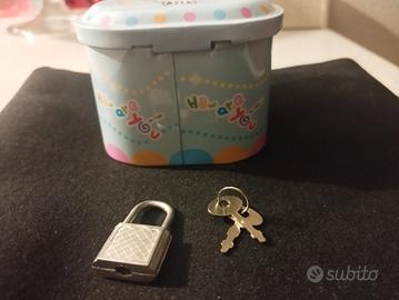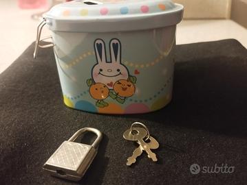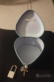 Salvadanaio cuore in latta colorata con lucchetto, nuovo mai usato senza cartellino.