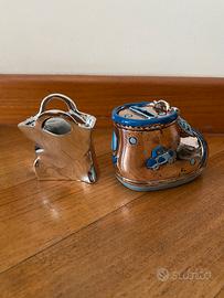 Salvadanaio a forma di scarpina ITS argenti, ideale per regalo nascita o battesimo e sacchettino in resina argentata Viola argenti perfetto per un regalo per la Prima Comunione