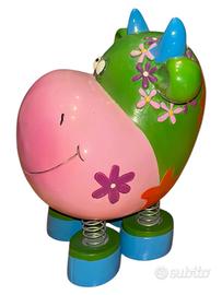 Salvadanaio di ceramica per bambini e ragazzi a forma di mucca. Gambe con le molle e buco per svuotarlo senza romperlo. Misura: 25cm